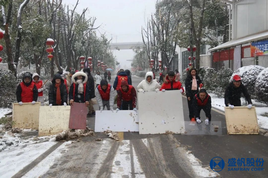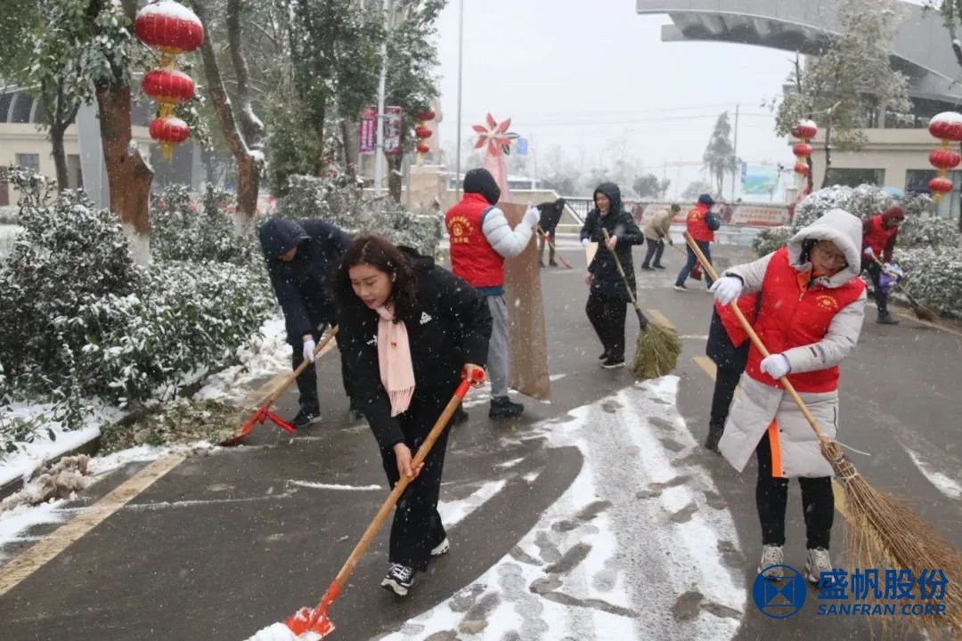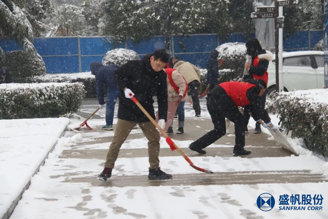 在困難面前,盛帆黨總支50余位黨員以雪為令、冒雪逆行,修剪被積雪壓垮的樹(shù)枝、清掃道路積雪,確保盛帆園區(qū)道路通暢,保障員工及家屬出行安全。在風(fēng)雪中為人民群眾筑起一道道堅(jiān)固的“紅色堡壘”,讓黨旗在除雪保暢一線高高飄揚(yáng),讓黨徽在除雪保暢一線熠熠生輝!