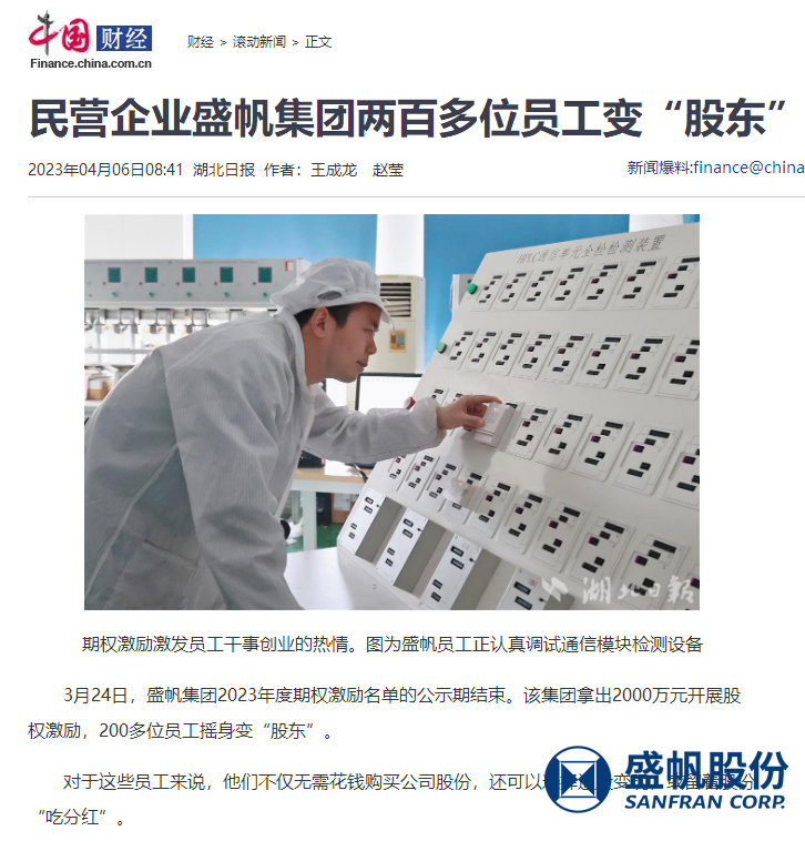 期權(quán)激勵(lì)激發(fā)員工干事創(chuàng)業(yè)的熱情。圖為盛帆員工正認(rèn)真調(diào)試通信模塊檢測(cè)設(shè)備3月24日,盛帆集團(tuán)2023年度期權(quán)激勵(lì)名單的公示···