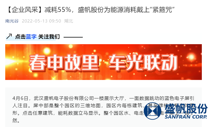 4月6日,武漢盛帆電子股份有限公司一樓展示大廳,一面數(shù)據(jù)跳動(dòng)的藍(lán)色電子屏引人注目。屏中部是整個(gè)園區(qū)的三維地圖,園區(qū)···